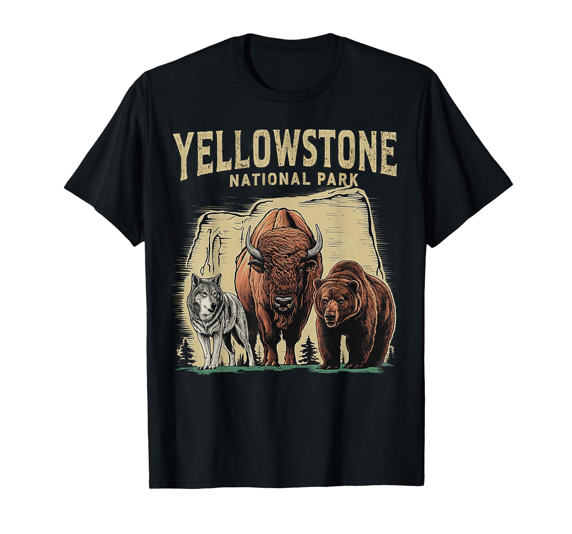 90s Yellowstone National Park Wolf And Bison Retro T-Shirt