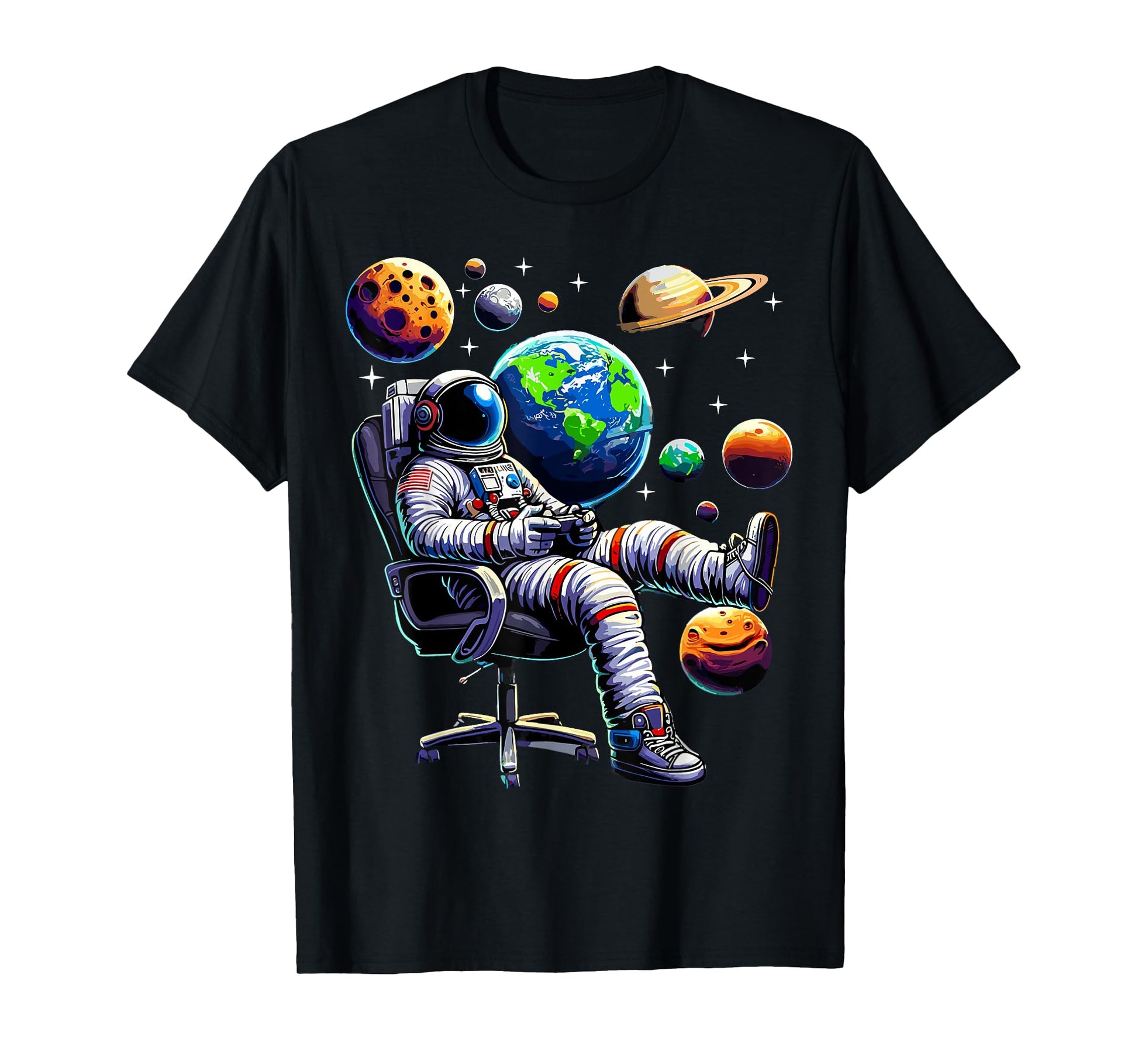 Astronaut Gamer Space Gaming System Planets T-Shirt