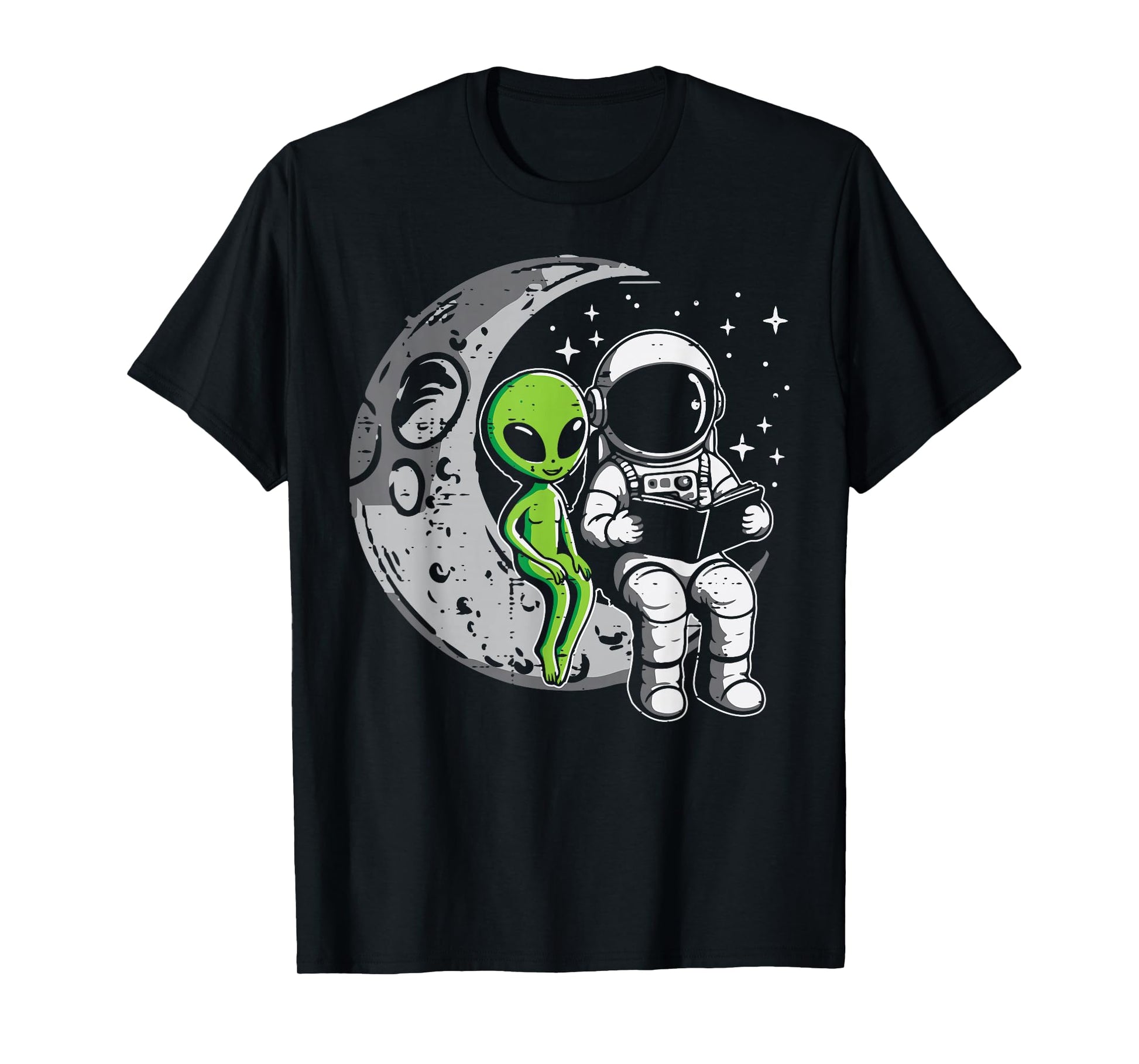 Astronaut Reading Book To Alien Moon Space Women Kids Men T-Shirt
