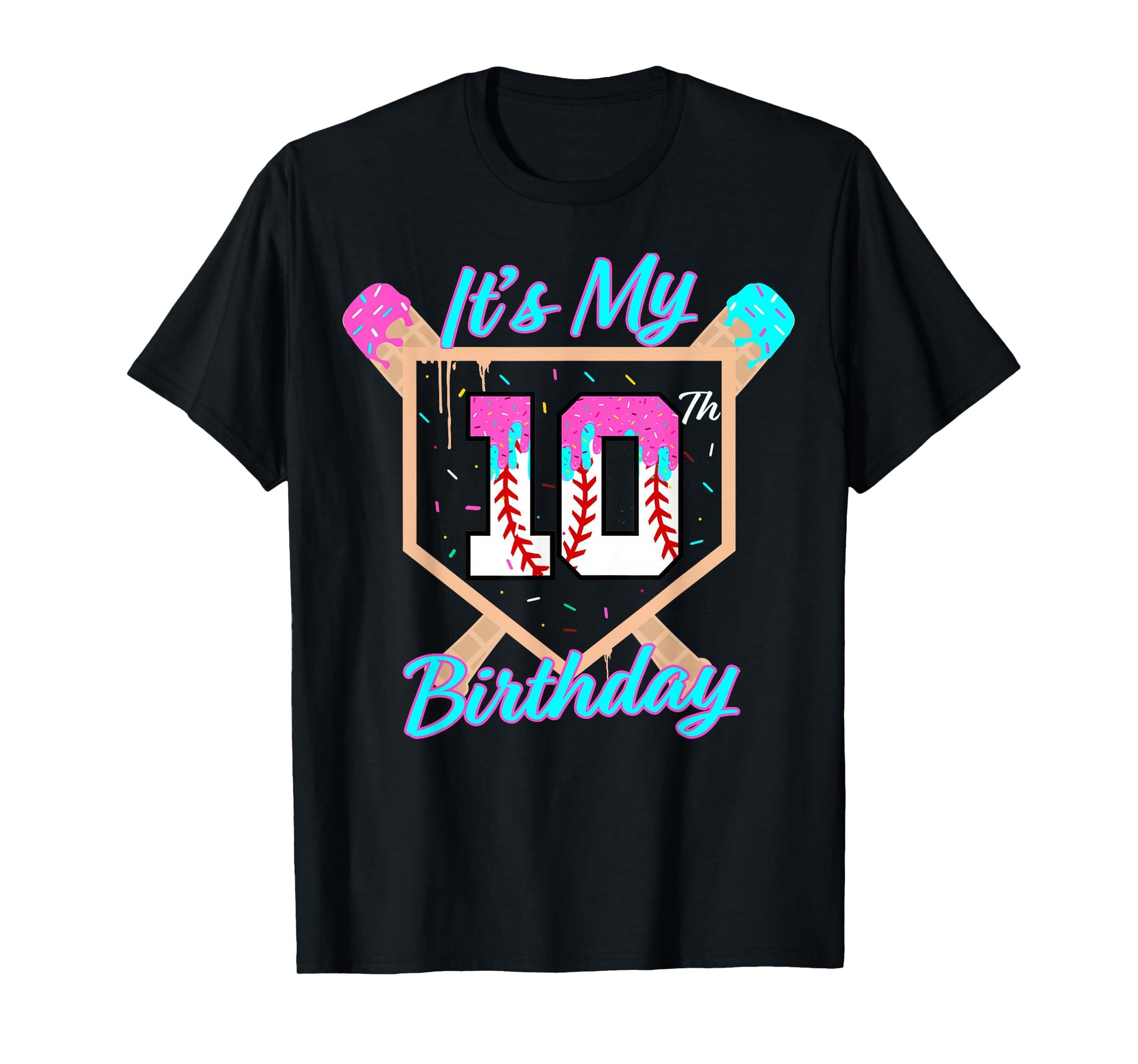 Baseball 10 Year Old Ice Cream Drip 10th Birthday Boy 10 T-Shirt