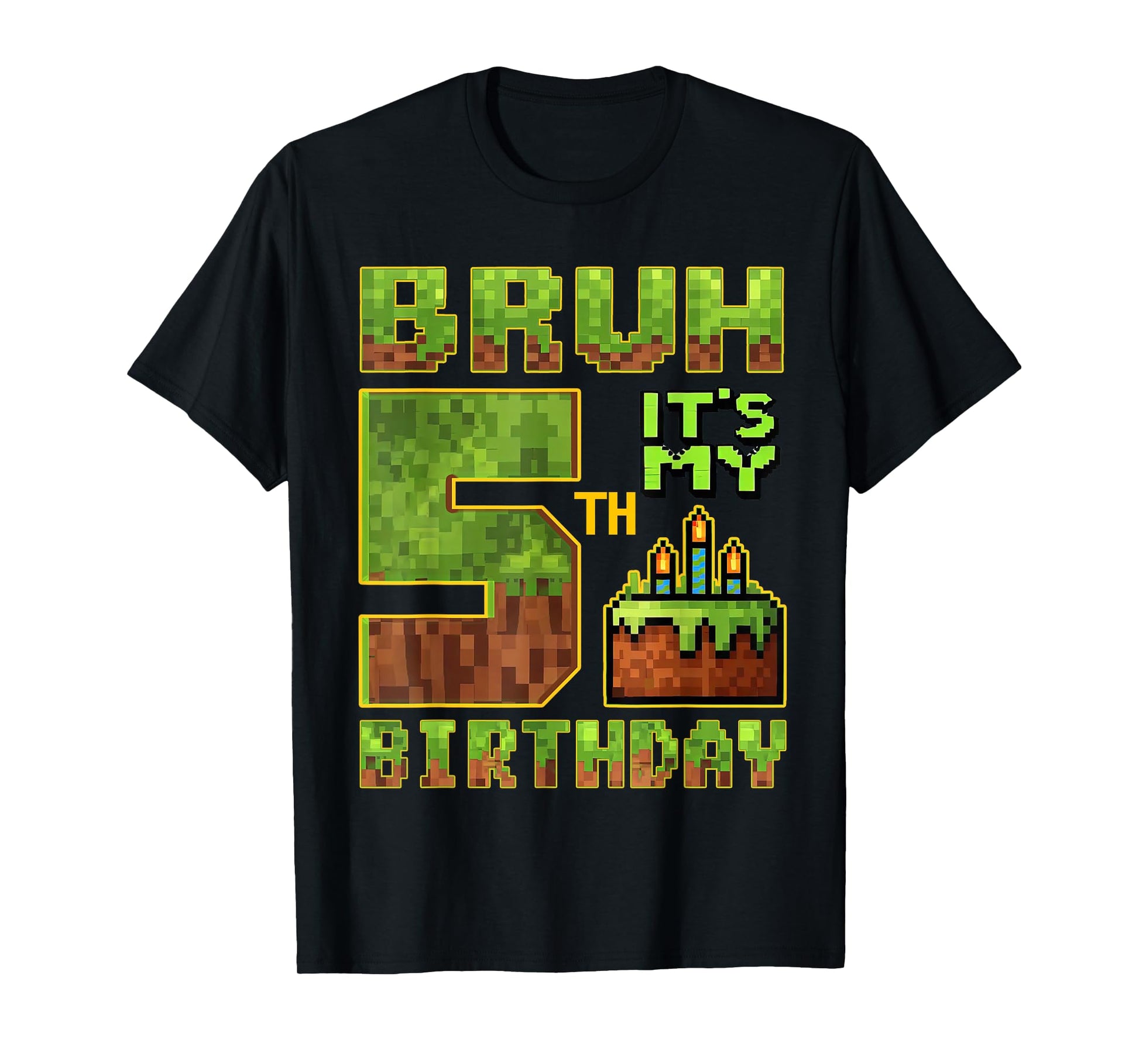 Birthday Boy 5 Year Old Bruh It's My 5th Bday Gamer Pixel T-Shirt