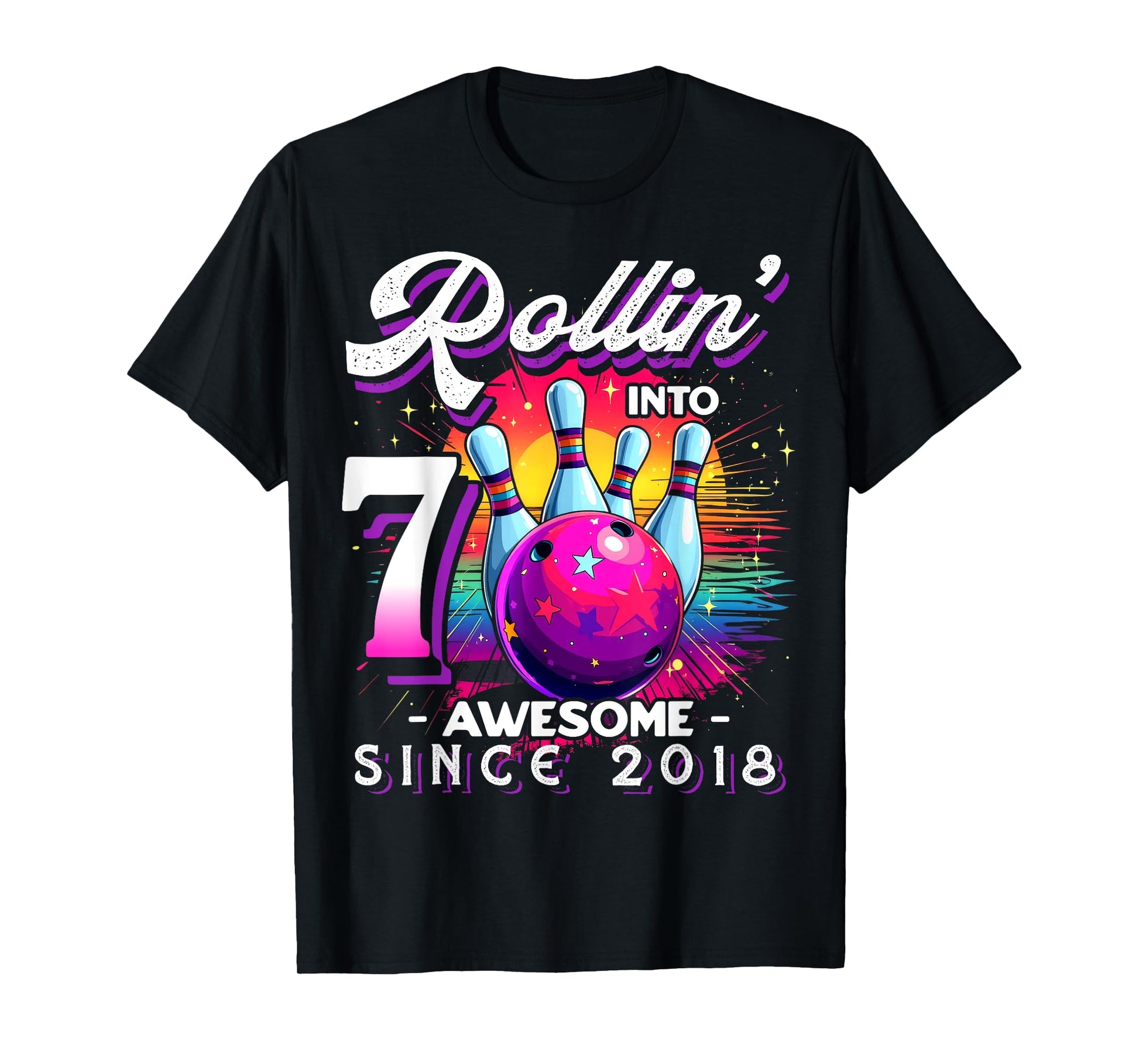 Bowling Party Rollin' 7 Awesome 2018 7th Birthday Girls T-Shirt
