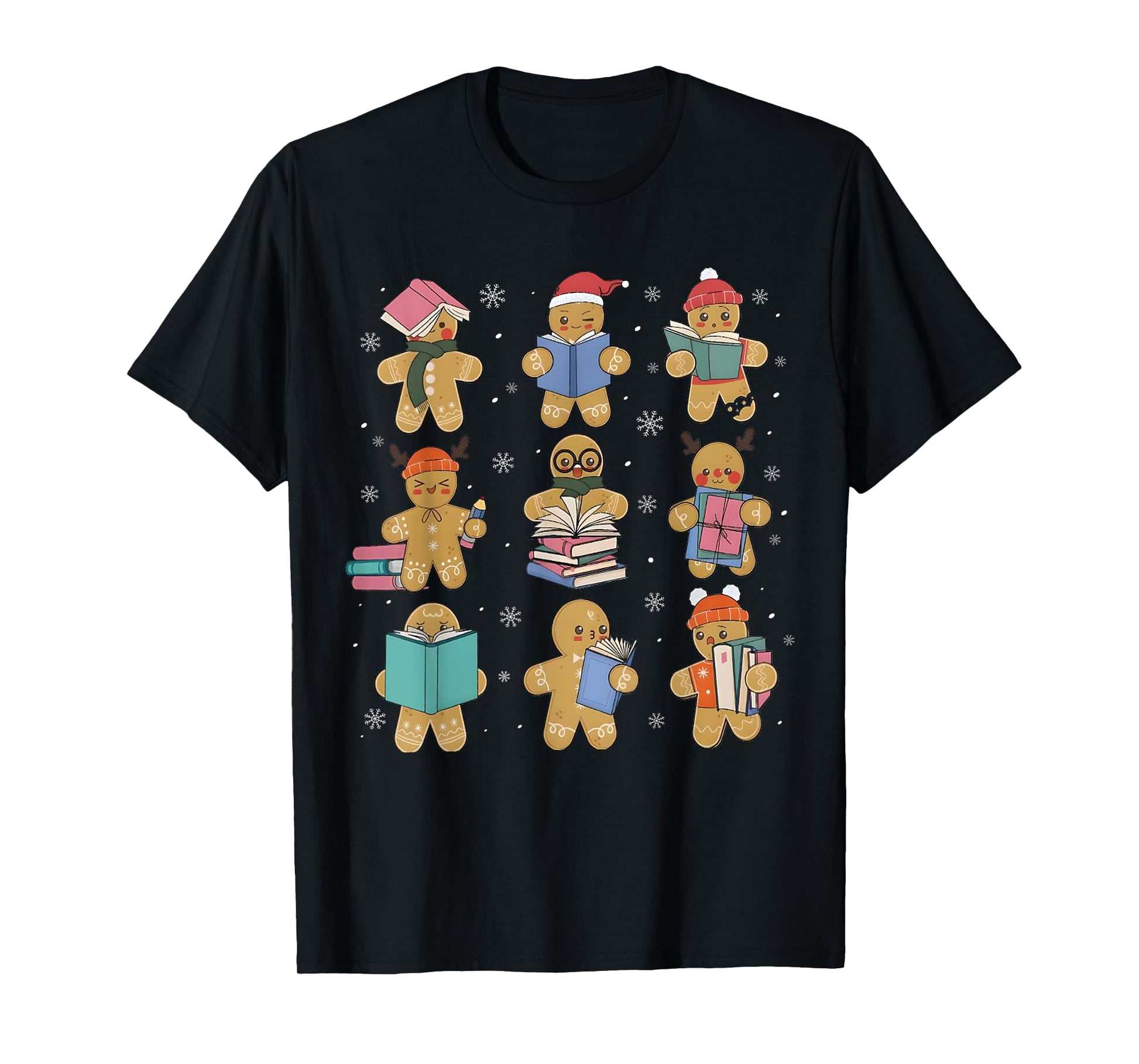 Christmas Library Gingerbread Man Books Lover Bookworm Gifts T-Shirt