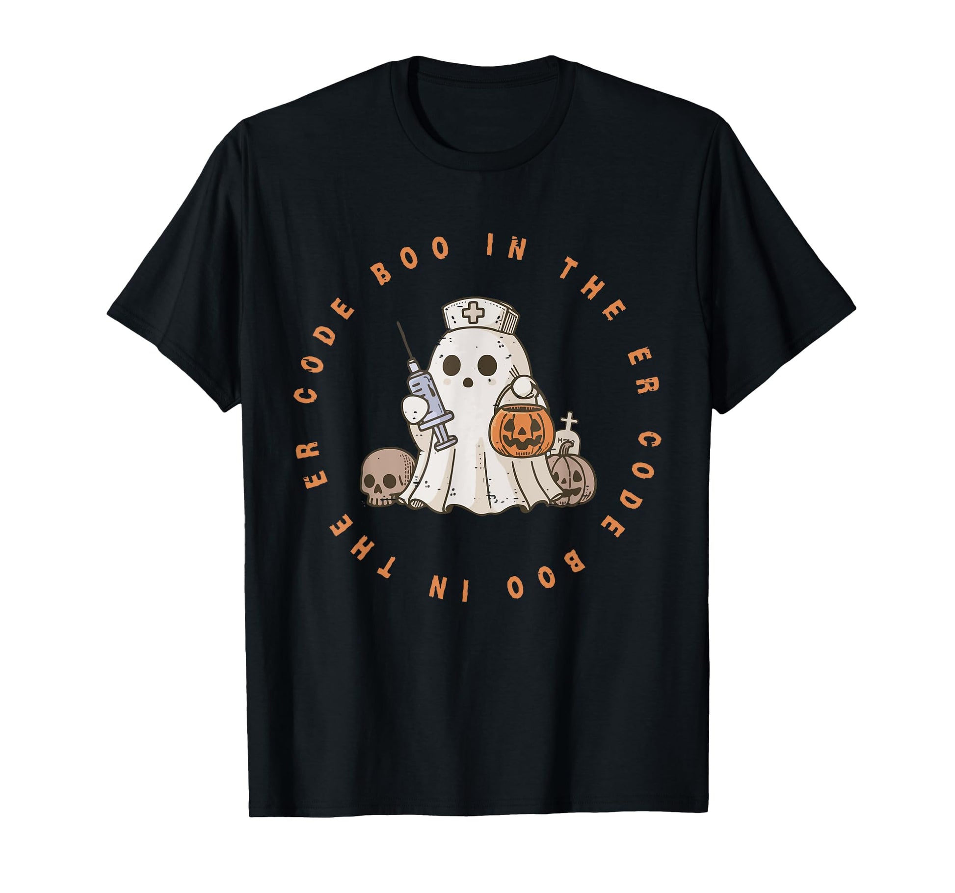 Code Boo In The ER Nurse Halloween Cute Ghost Spooky Season T-Shirt