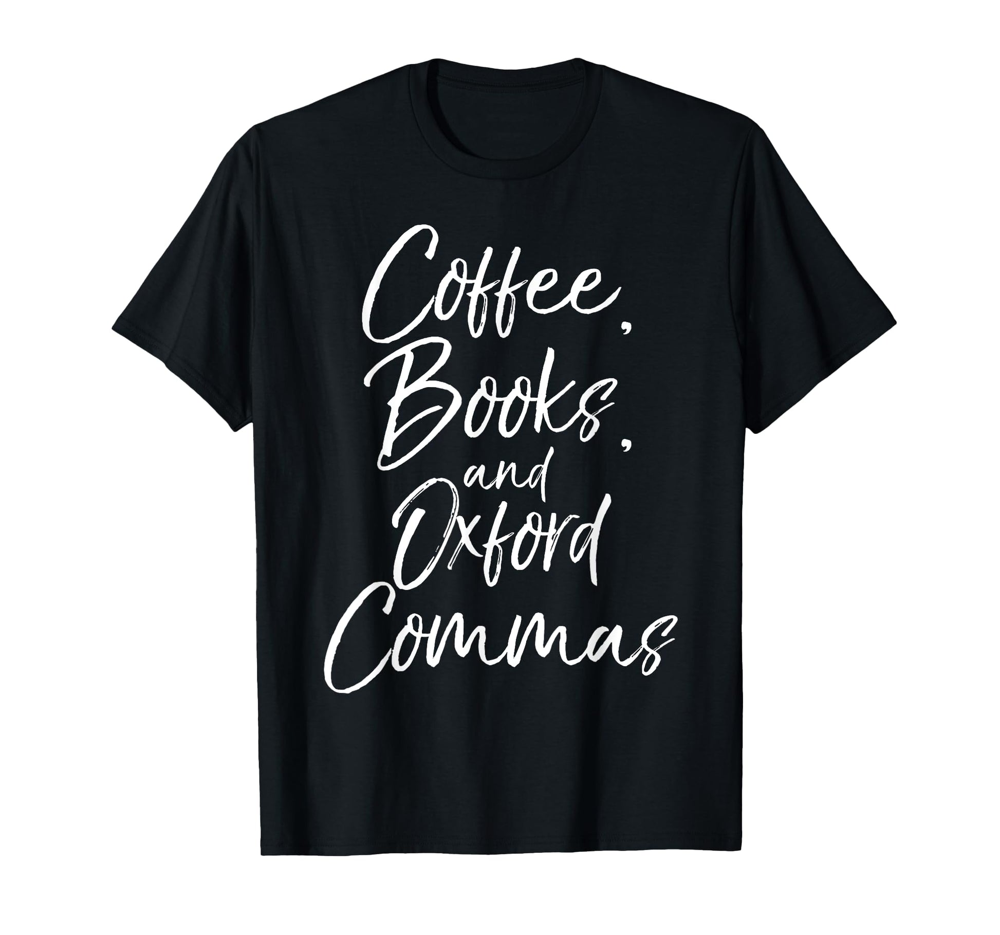 Coffee, Books, and Oxford Commas Shirt Funny Reading Tee T-Shirt