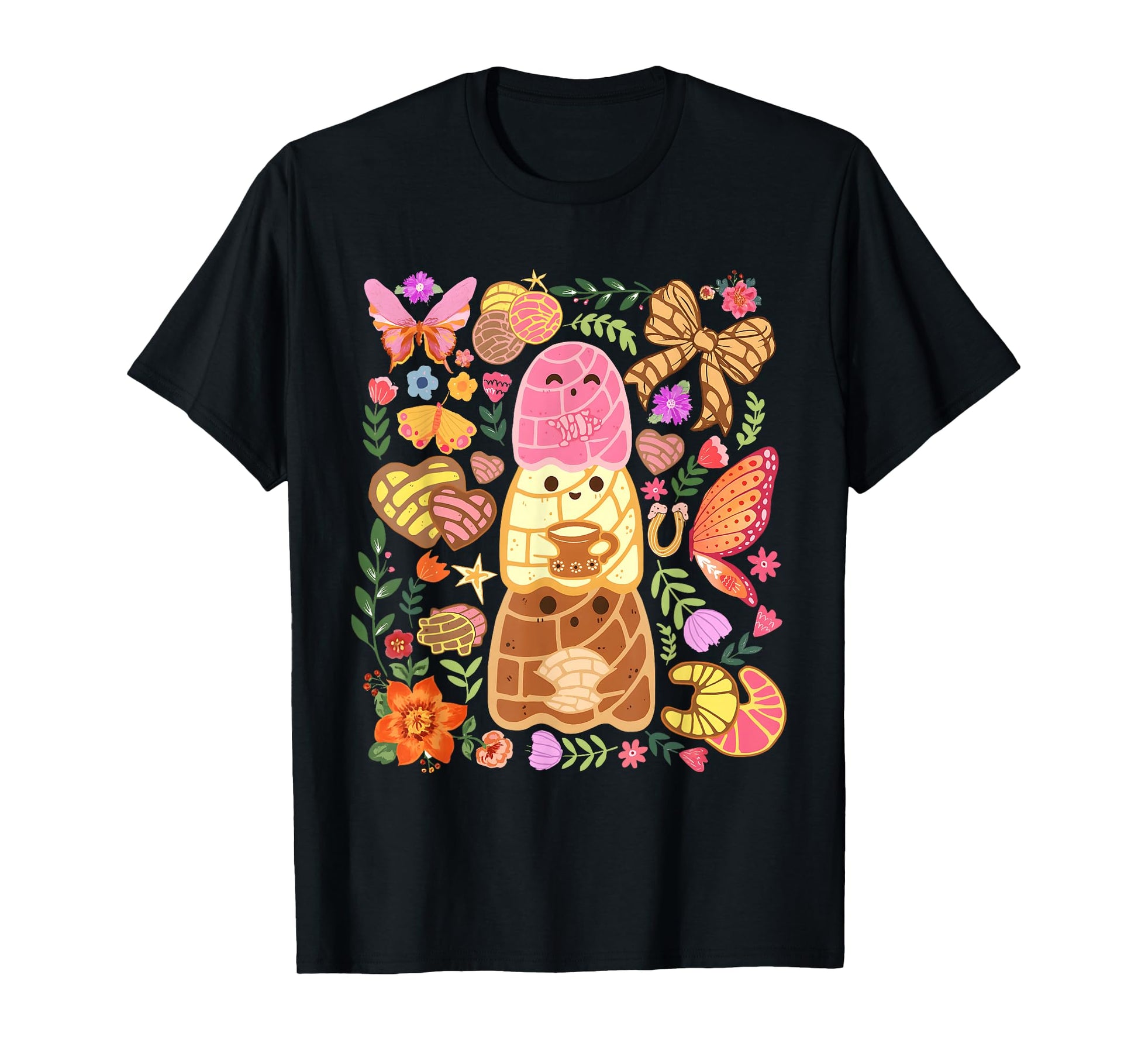 Cute Concha Bread with Butterflies and Flowers Kawaii T-Shirt