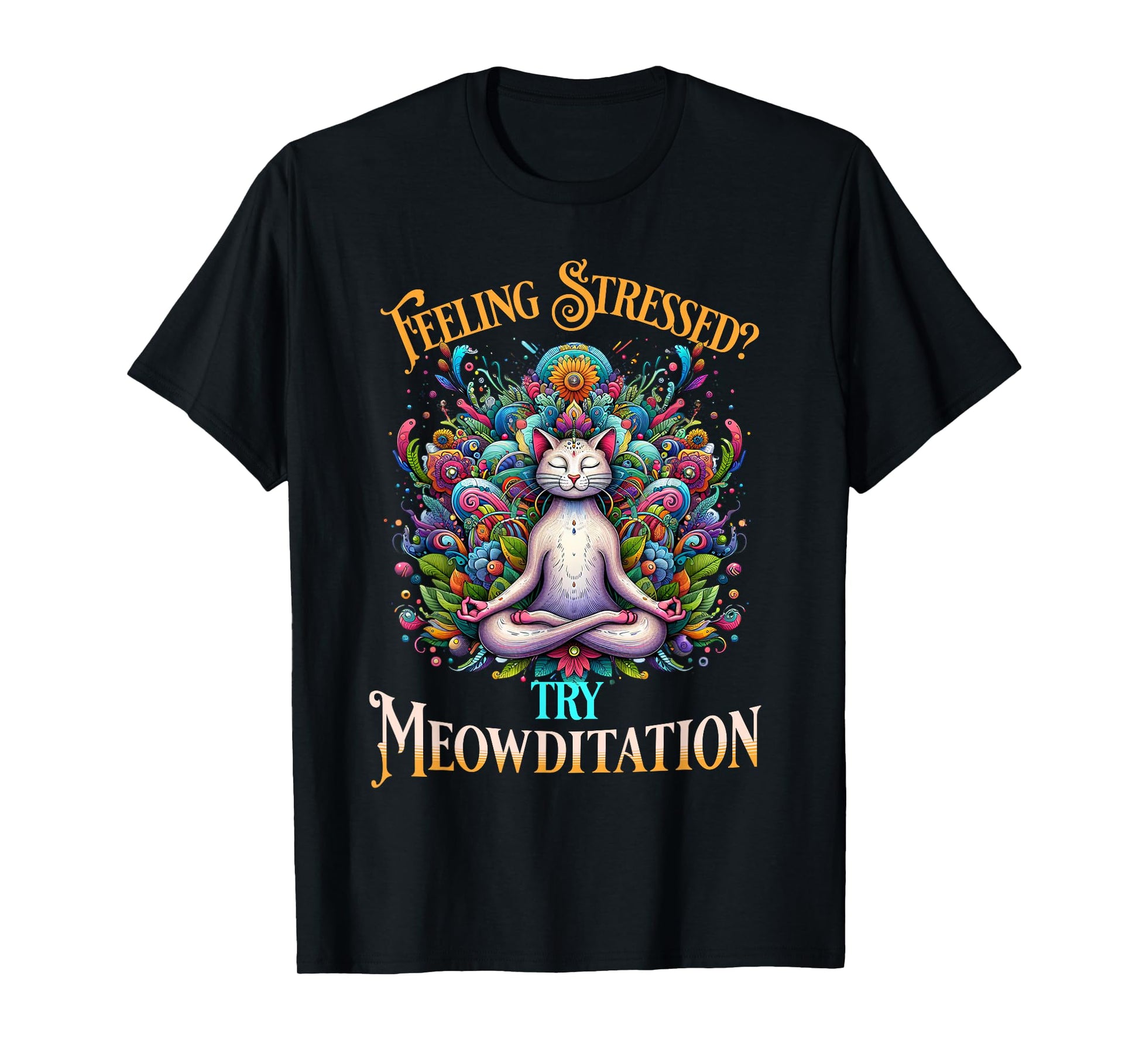 Feeling Stressed? Try Meowditation Cat Lover Meditation Yoga Men Women T-Shirt