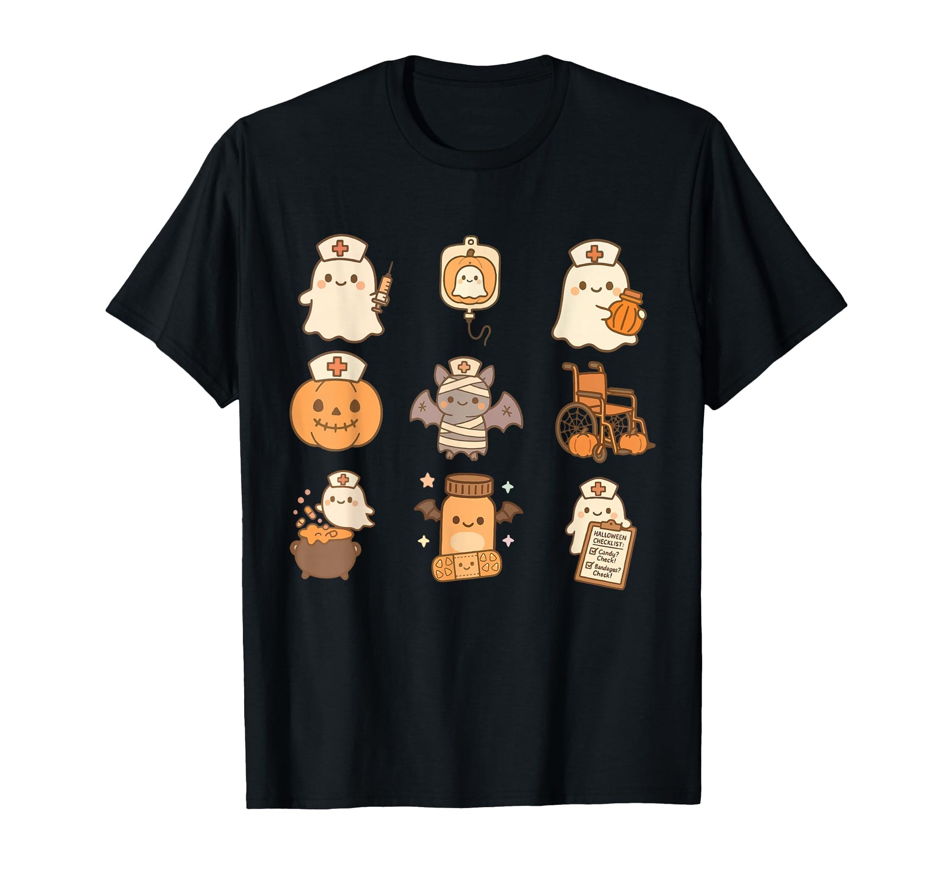 Funny Spooky Nurse Halloween Pumpkin Ghost School Nursing T-Shirt