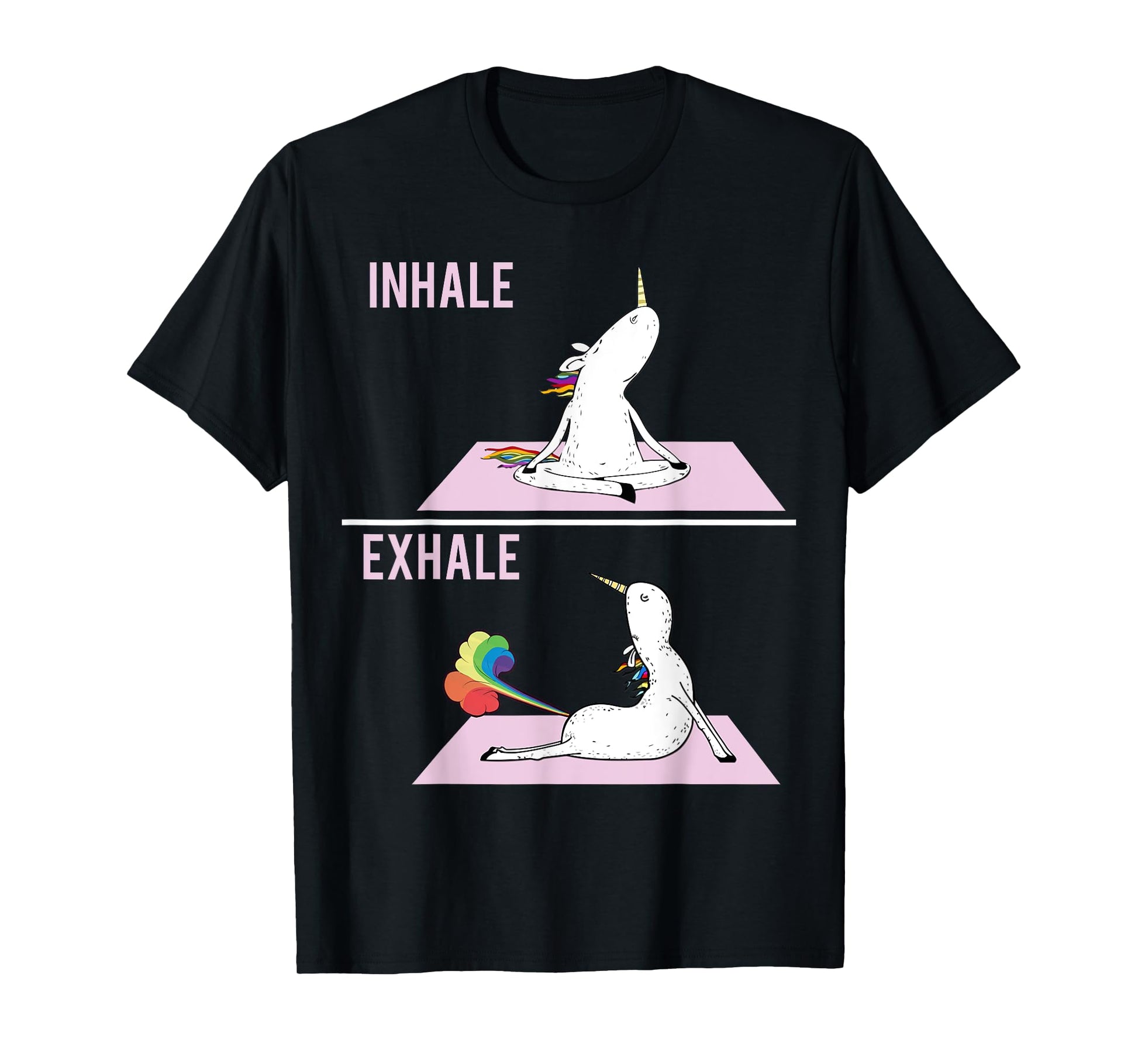 Funny Unicorn Yoga Pose Inhale Exhale Farting Unicorn T-Shirt