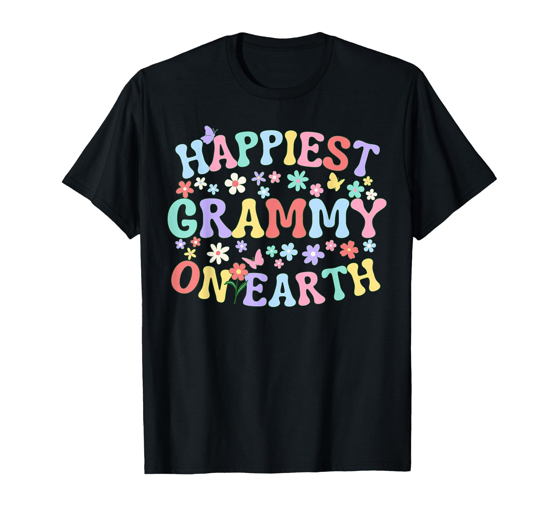 Happiest Grammy On Earth Family Trip Squad Groovy Grandma T-Shirt