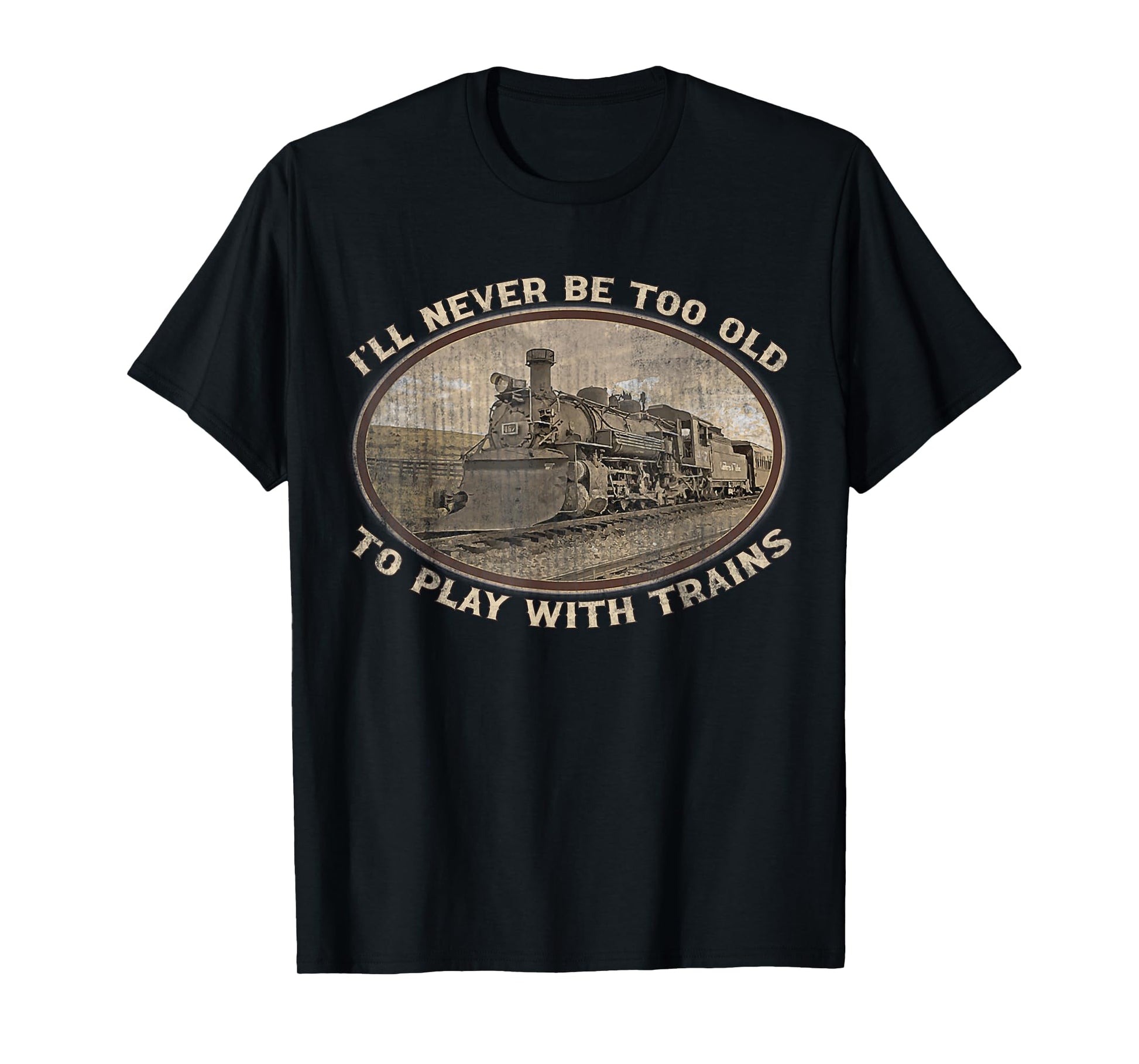 I'll Never Be Too Old To Play With Trains Funny Vintage T-Shirt