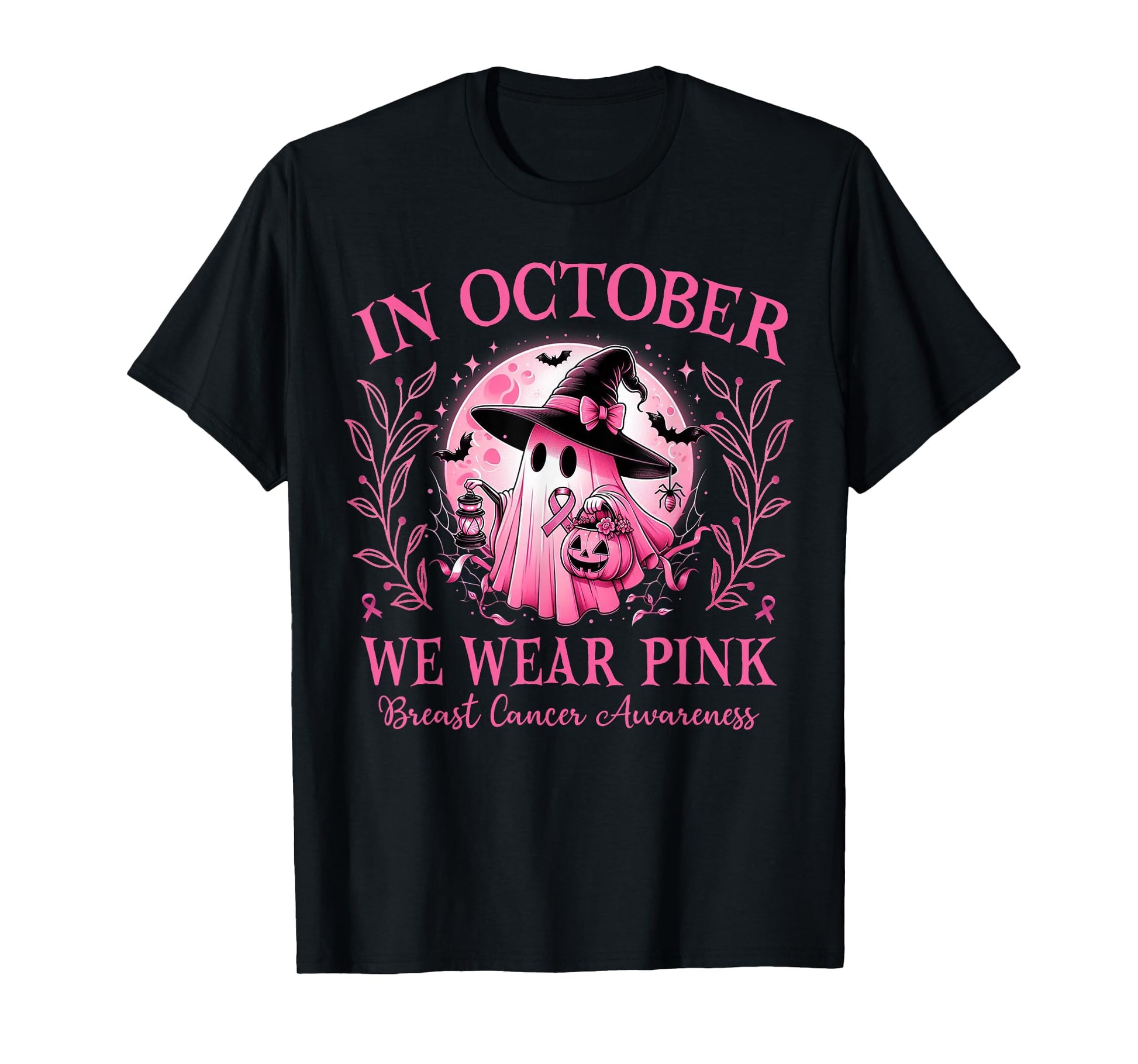 In October We Wear Pink Ghost Witch Breast Cancer Halloween T-Shirt