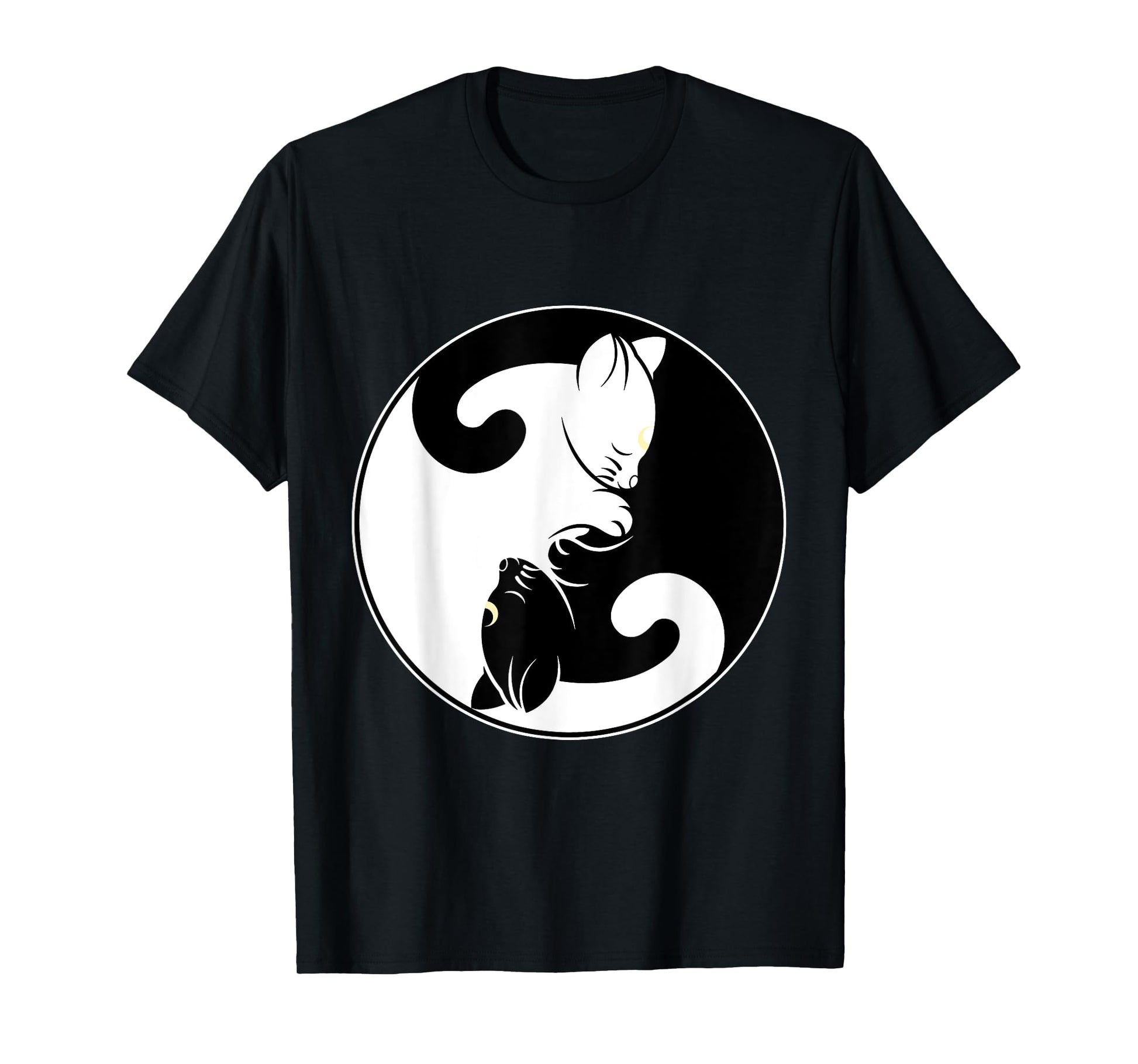 Kawaii Yin Yang Black Cat and Moon Crescent Head Cartoon Cat Kawaii Yin Yang Cat Moon Crescent T-Shirt