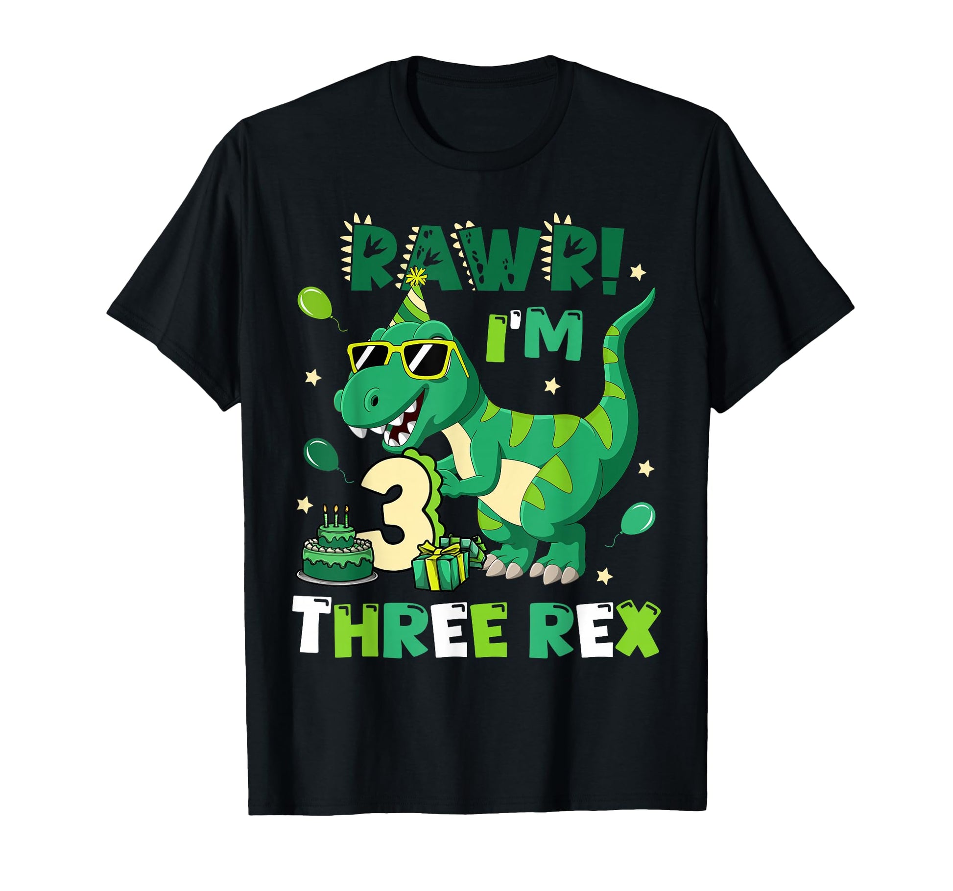 Kids Three Rex Birthday Party Outfit Dinosaur 3 Year Old Boy T-Shirt