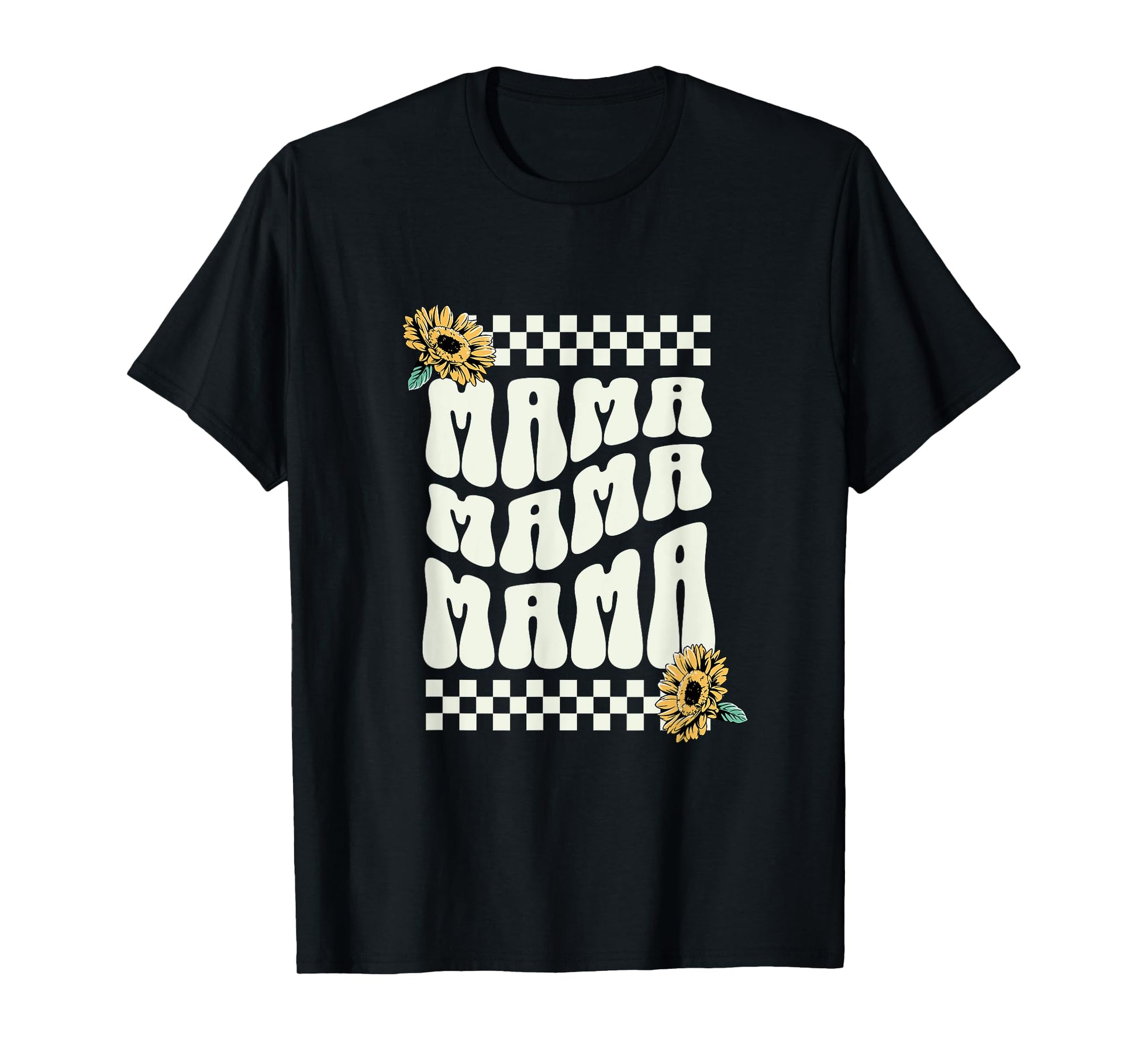 Mama With Checkered Border and Sunflowers Mom Mother Mommy T-Shirt