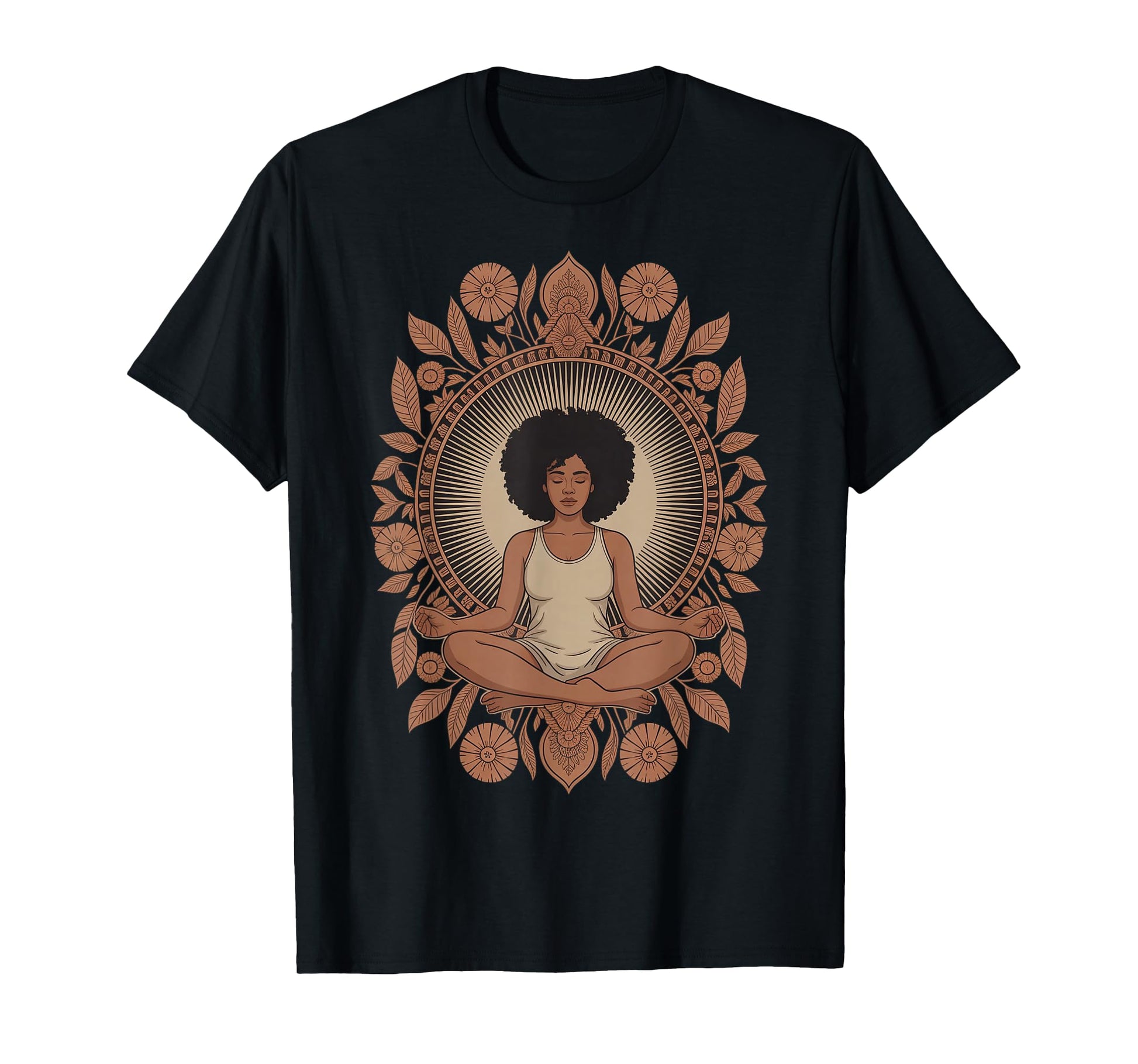 Meditative Black Woman with Floral Mandala T-Shirt