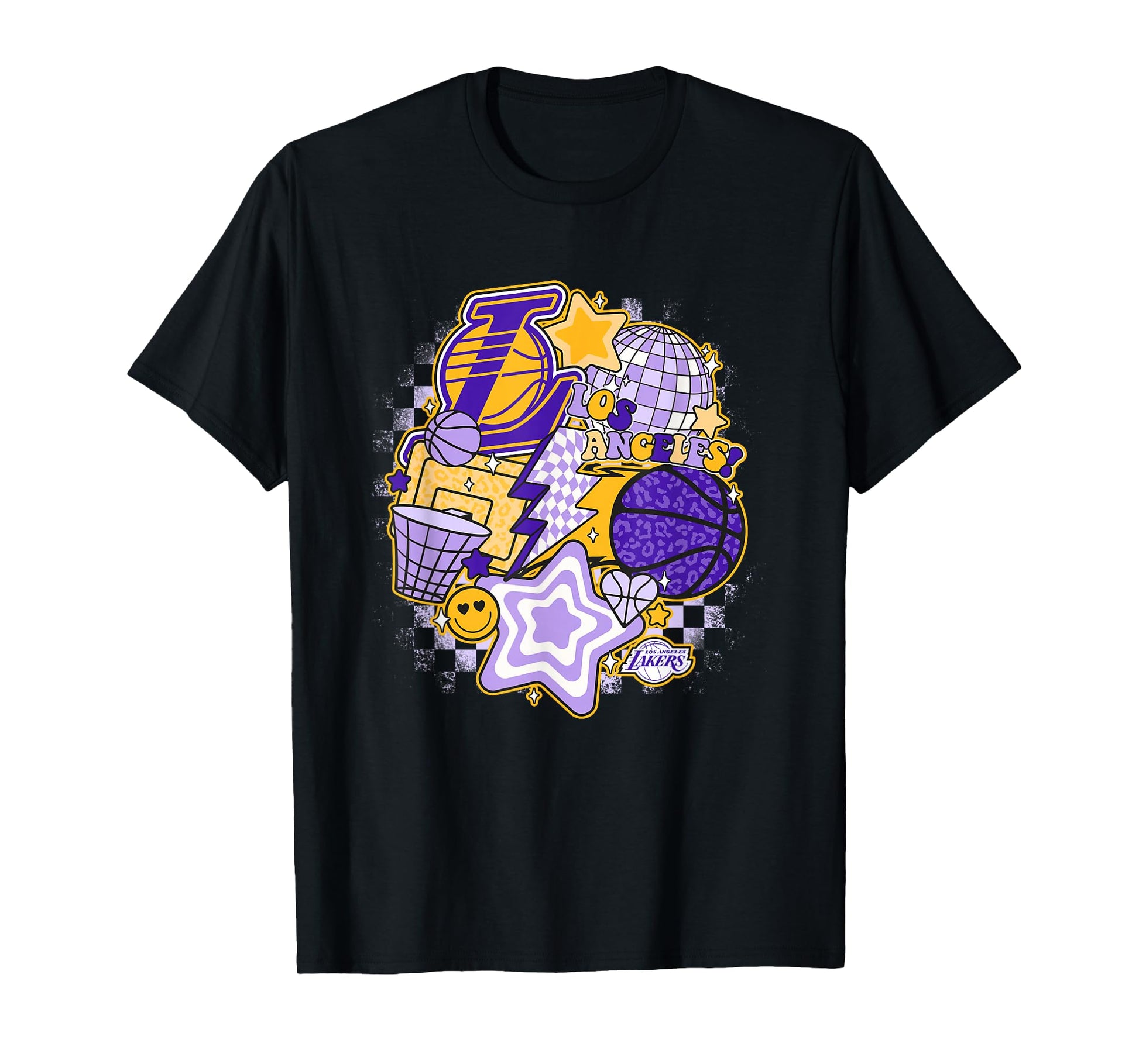 NBA Los Angeles Lakers Psychedelic Basketball Collage T-Shirt, Small, White