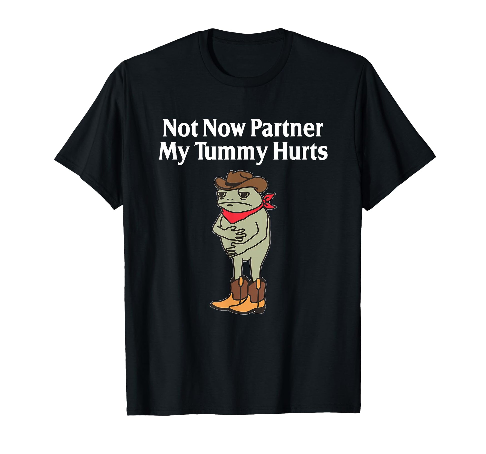 Not Now Partner My Tummy Hurts Funny Frog Cowboy T-Shirt