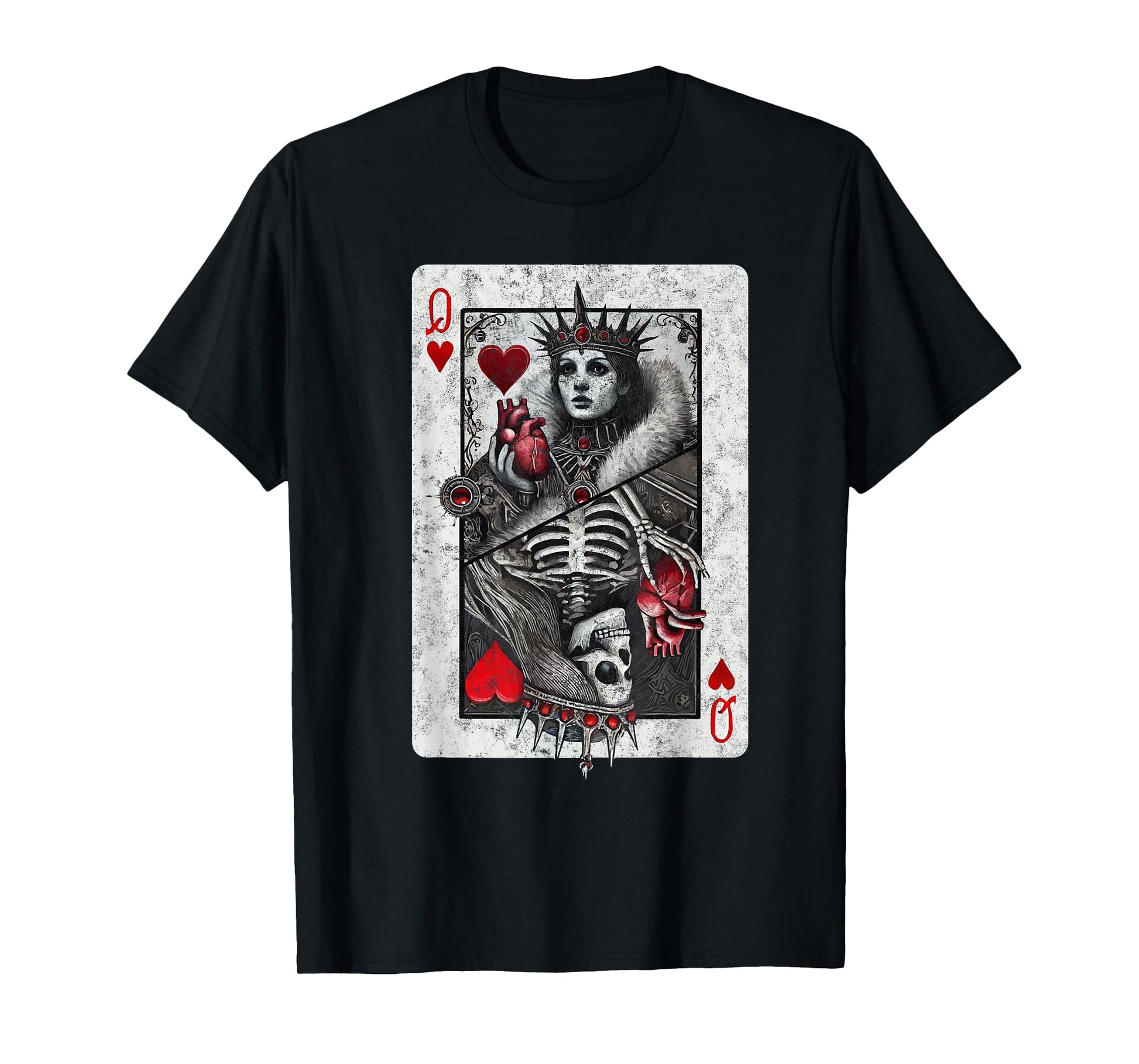 Playing Card Queen of Hearts Death Skeleton Halloween Tee T-Shirt