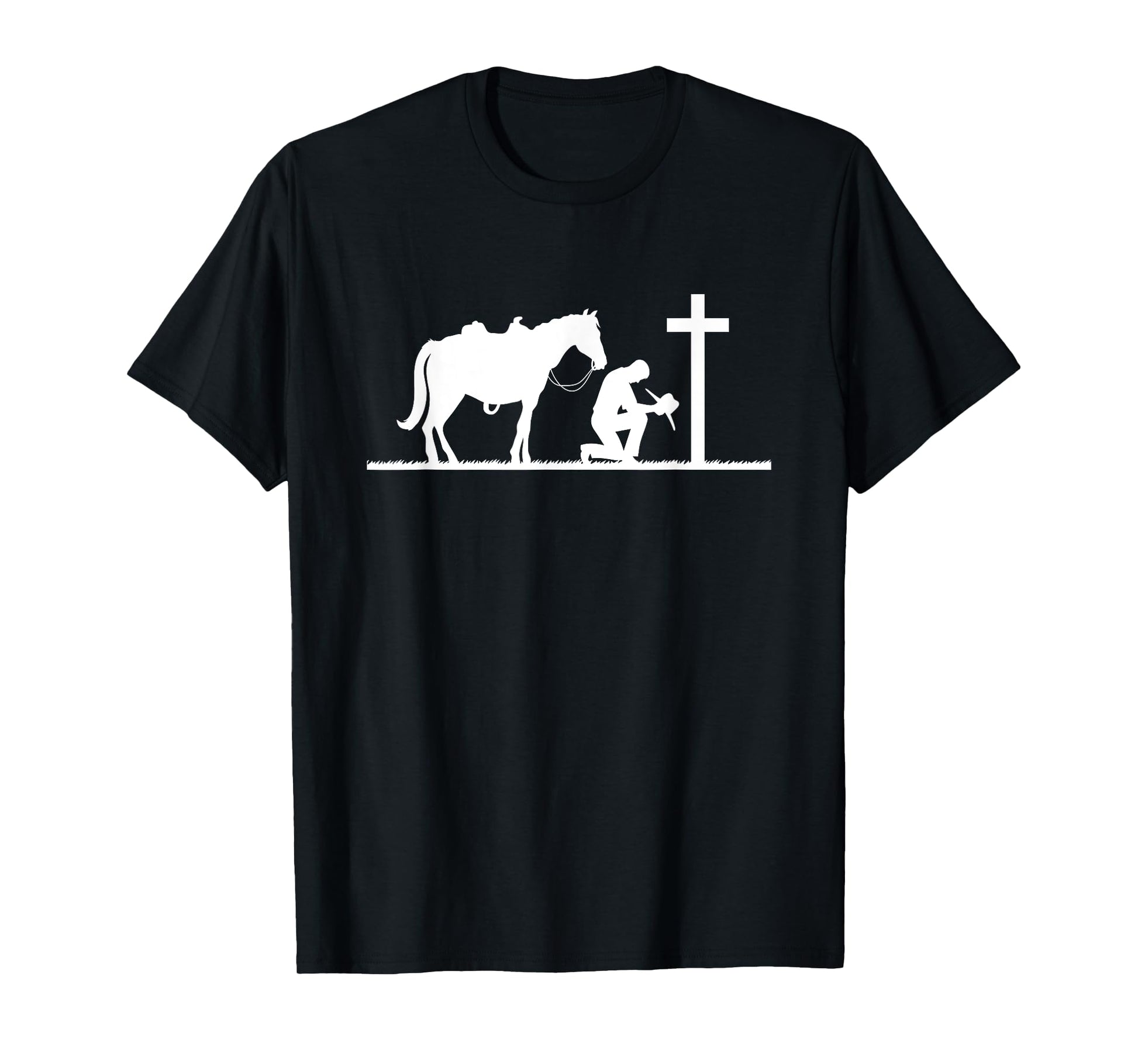 Praying Cowboy Kneeling Cross Western Bible Jesus Horse T-Shirt