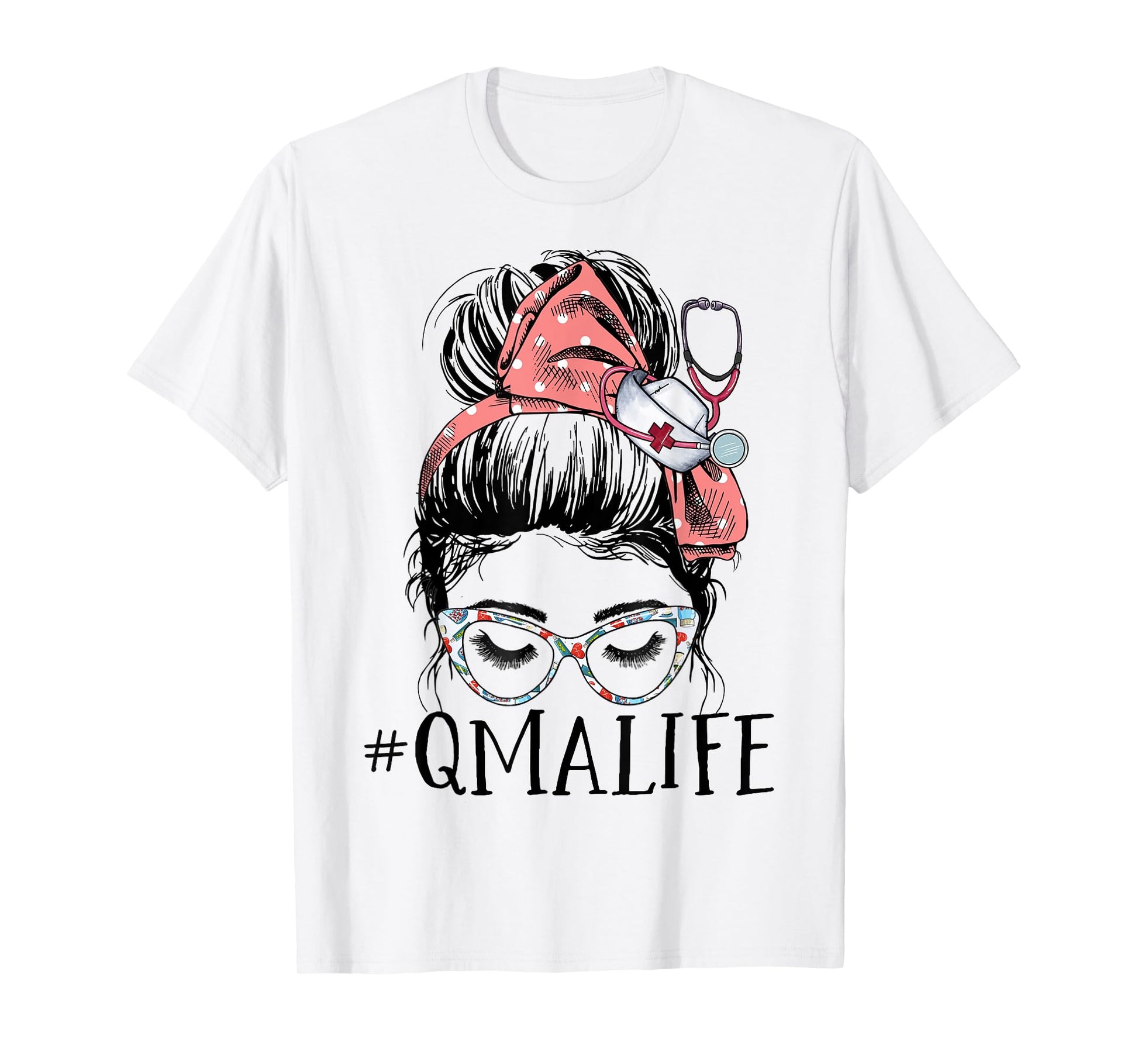 Qualified Medication Aide Funny QMA Life Messy Bun Nurse T-Shirt