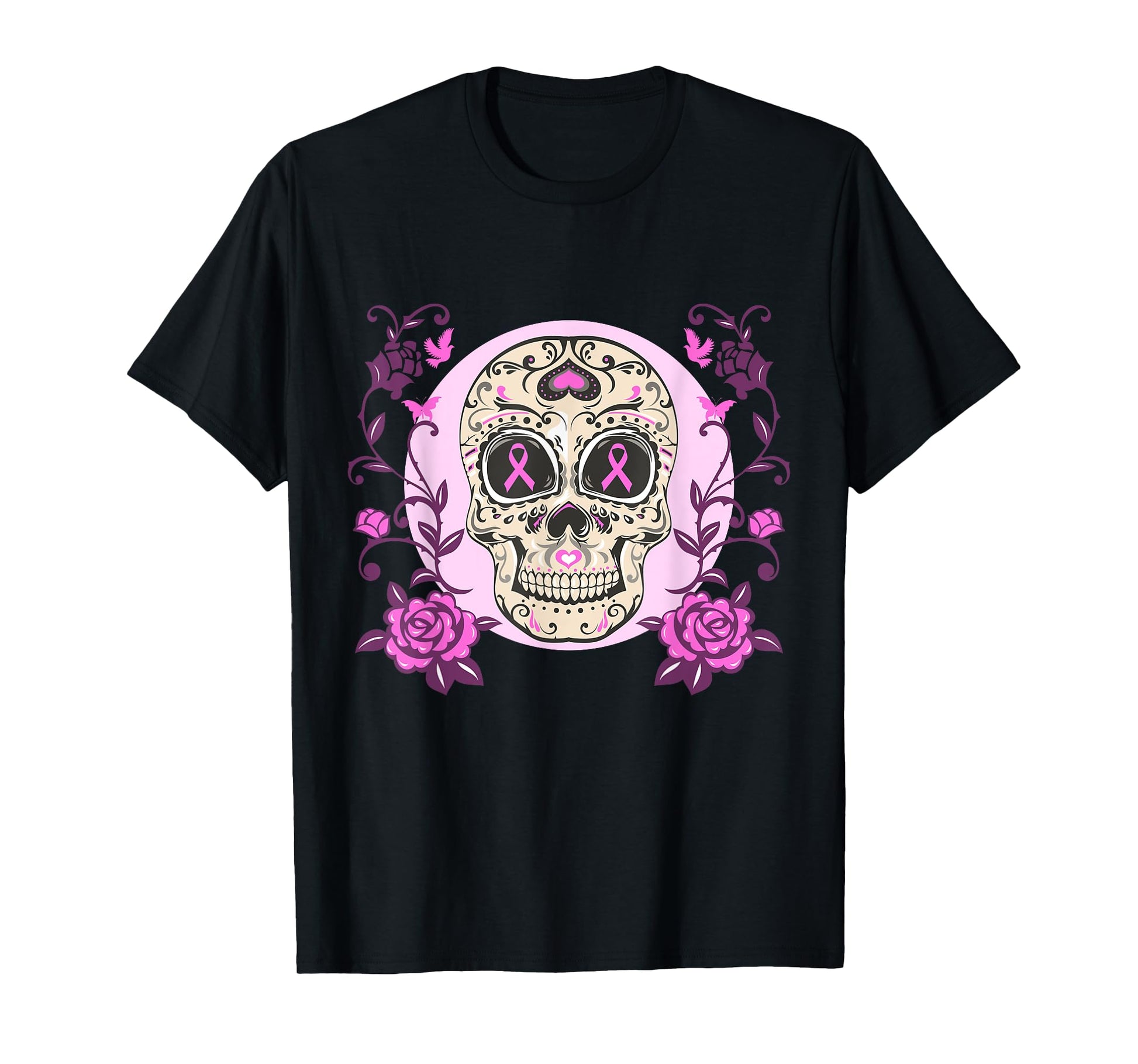 Sugar Skull Pink Ribbon Breast Cancer Awareness Calavera T-Shirt