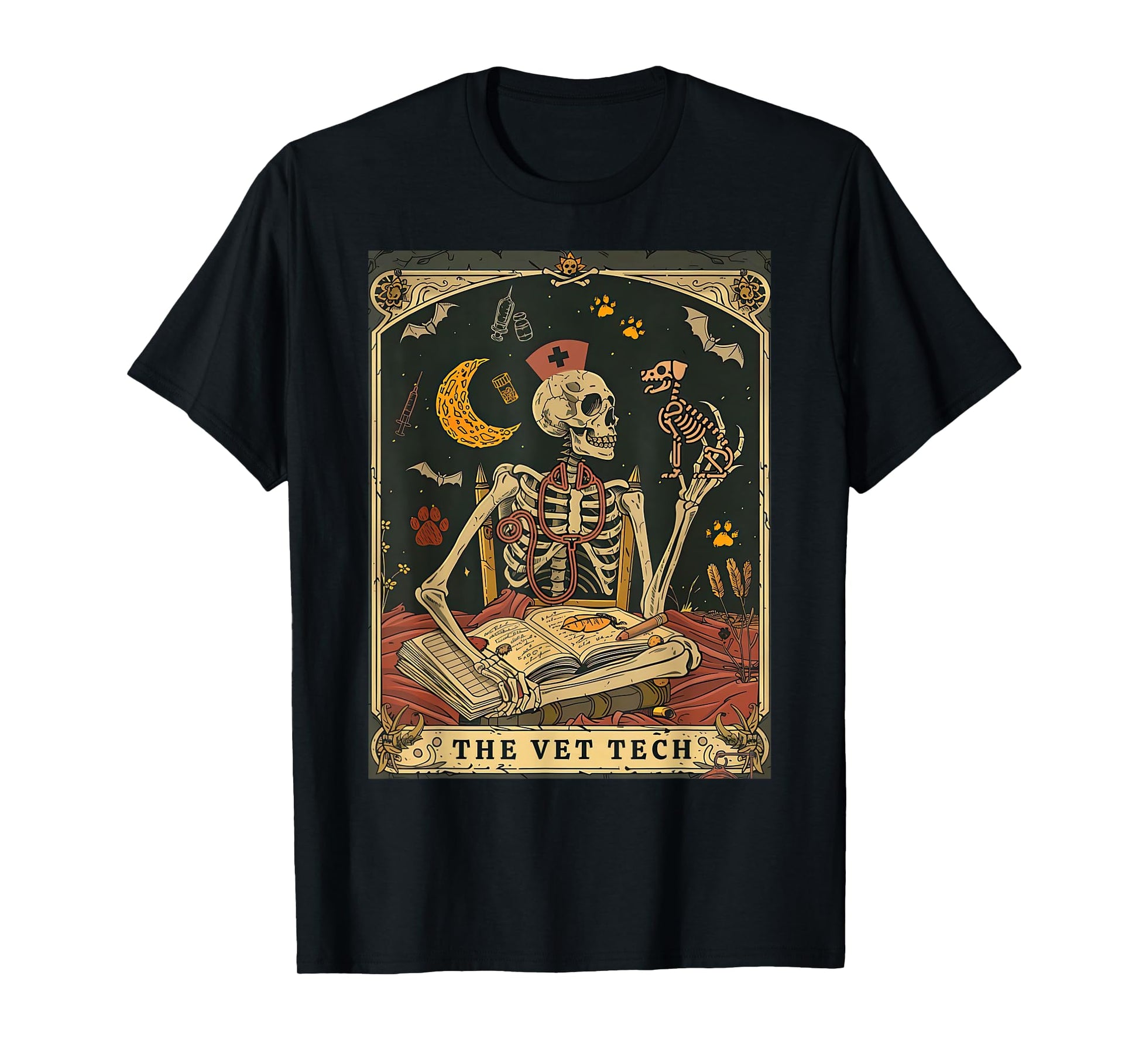 The Vet Tech Tarot Card Skeleton Stethoscope Veterinarian T-Shirt