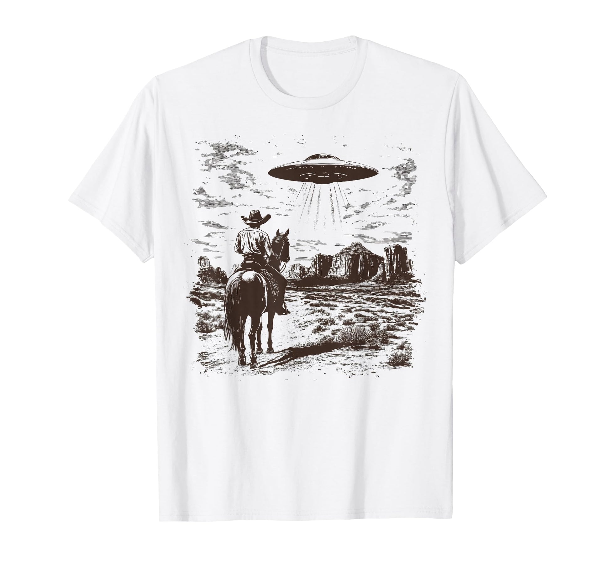 Vintage Rodeo Cowboy Western Country Spaceship UFO Alien T-Shirt