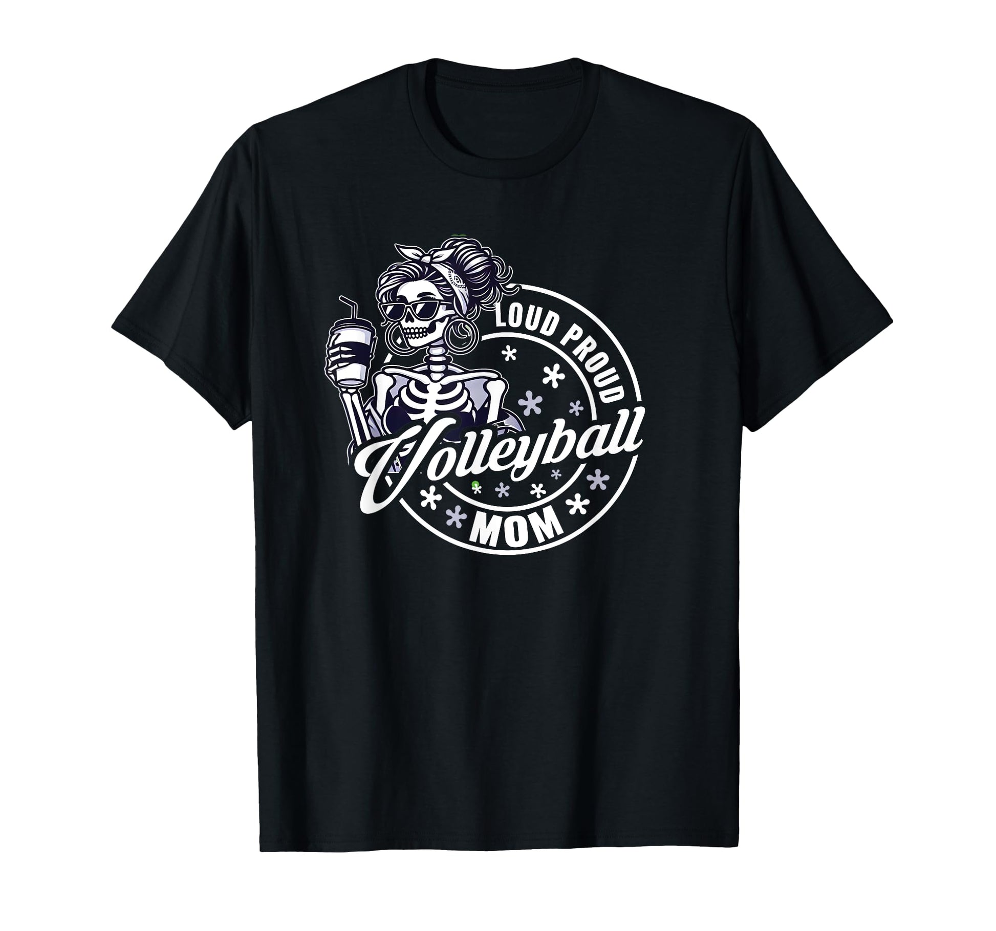 Volleyball Mom Skeleton Drinking Coffee Loud Proud Mother T-Shirt
