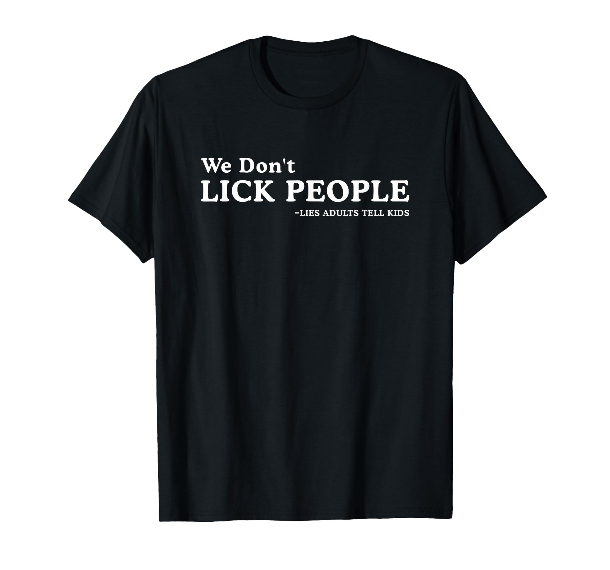 We Don't Lick People Lies Adults Tell Kids Funny Adult Humor T-Shirt