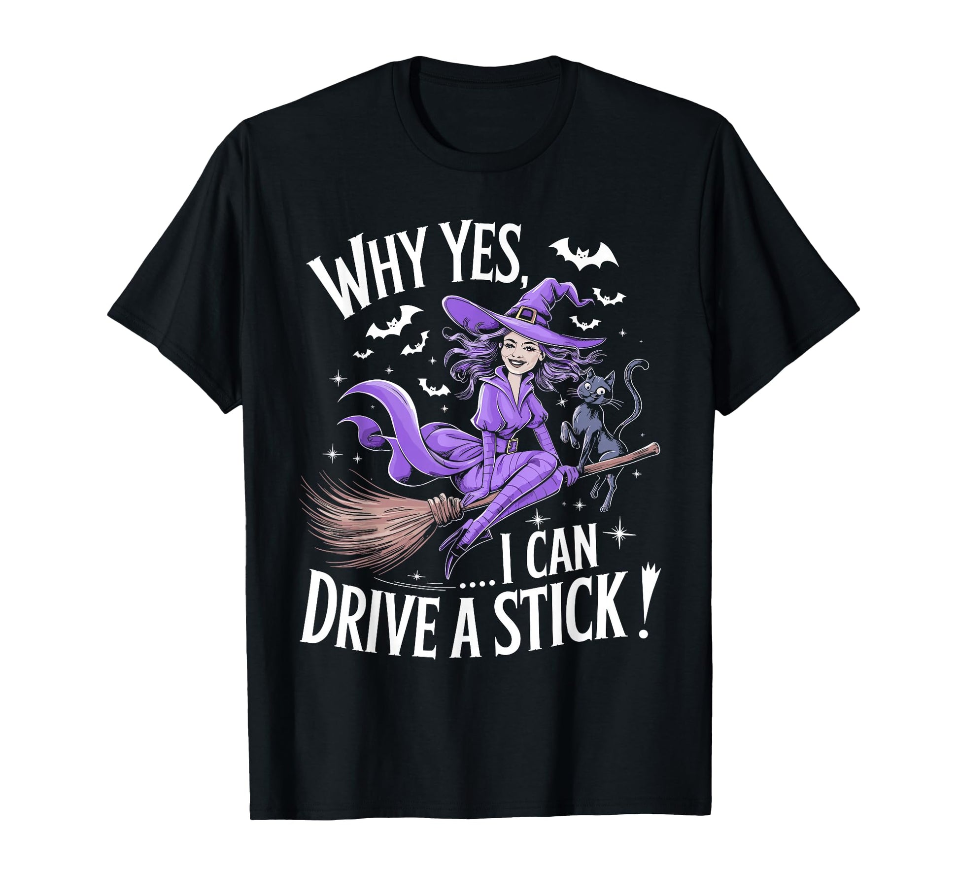 Why Yes Actually I Can Drive A Stick Funny Halloween Witch T-Shirt